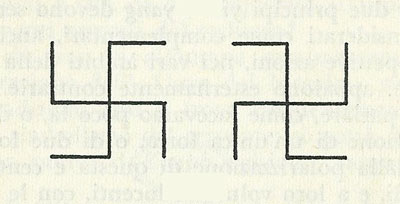 Questa figura, peraltro, può essere considerata sia in un senso "macrocosmico" che in un senso "microcosmico": in virtù della loro analogia, si può sempre passare dall'uno all'altro di questi due punti di vista mediante un'opportuna trasposizione; ma qui ci riferiamo direttamente soprattutto al primo, perché gli accostamenti di maggior rilievo che si presentano sono relativi al simbolismo dell' "Uovo del Mondo", cui abbiamo già fatto riferimento a proposito dello yin-yang. Da questo punto di vista, possiamo considerare le due spirali come l'indicazione di una forza cosmica che agisce in senso inverso nei due emisferi, i quali, nella loro più larga applicazione, sono naturalmente le due metà dell' "Uovo del Mondo" , mentre i punti intorno ai quali si avvolgono le due spirali sono i due poli. |