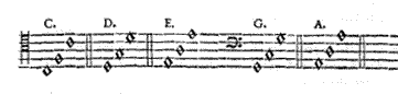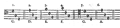 Qui si debbono richiamare in mente quelle cose che stabilissimo [195] di sopra intorno alle Fughe semplici: ritrovarsi cioè sei differenti specie dottave pel vario sito del Semitono, e conseguentemente esservi altrettanti Modi principali: vale a dire D. E. F. G. A. C. la descrizione delle quali, benchè già posta nel luogo citato, penso non sia inutile ripetere di bel nuovo, così richiedendo lordine.
